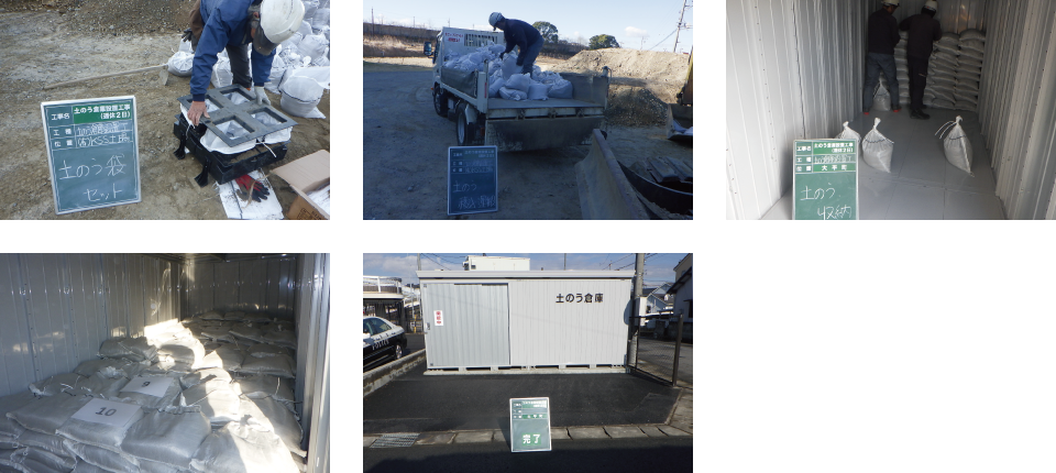 土のうを収納する倉庫を設置し、土のうを収納しました。